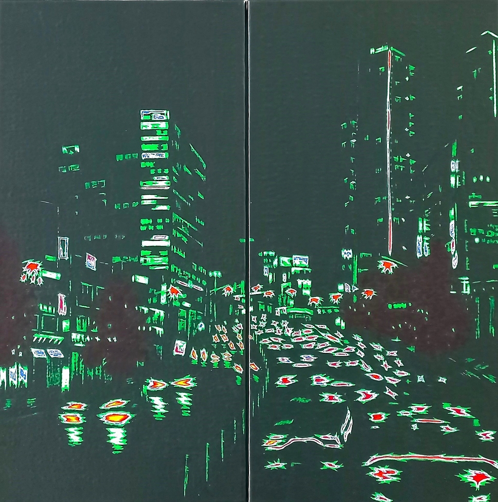 이 작품은 가로 180cm, 세로 90cm의 순수 면봉만 꽂아 제작된 작품으로 작가는 완성된 날 그 위에 누워 휴식을 취했다고 한다. 한강대교 위에서 바라본 한강과 올림픽대교, 강변북로의 자동차들, 그 외 수많은 불빛들을 표현한 이 작품을 이번 전시에서 만나볼 수 있다고 하니 새로운 표현과 함께 대구에서 한강뷰~를 볼 기회이다.