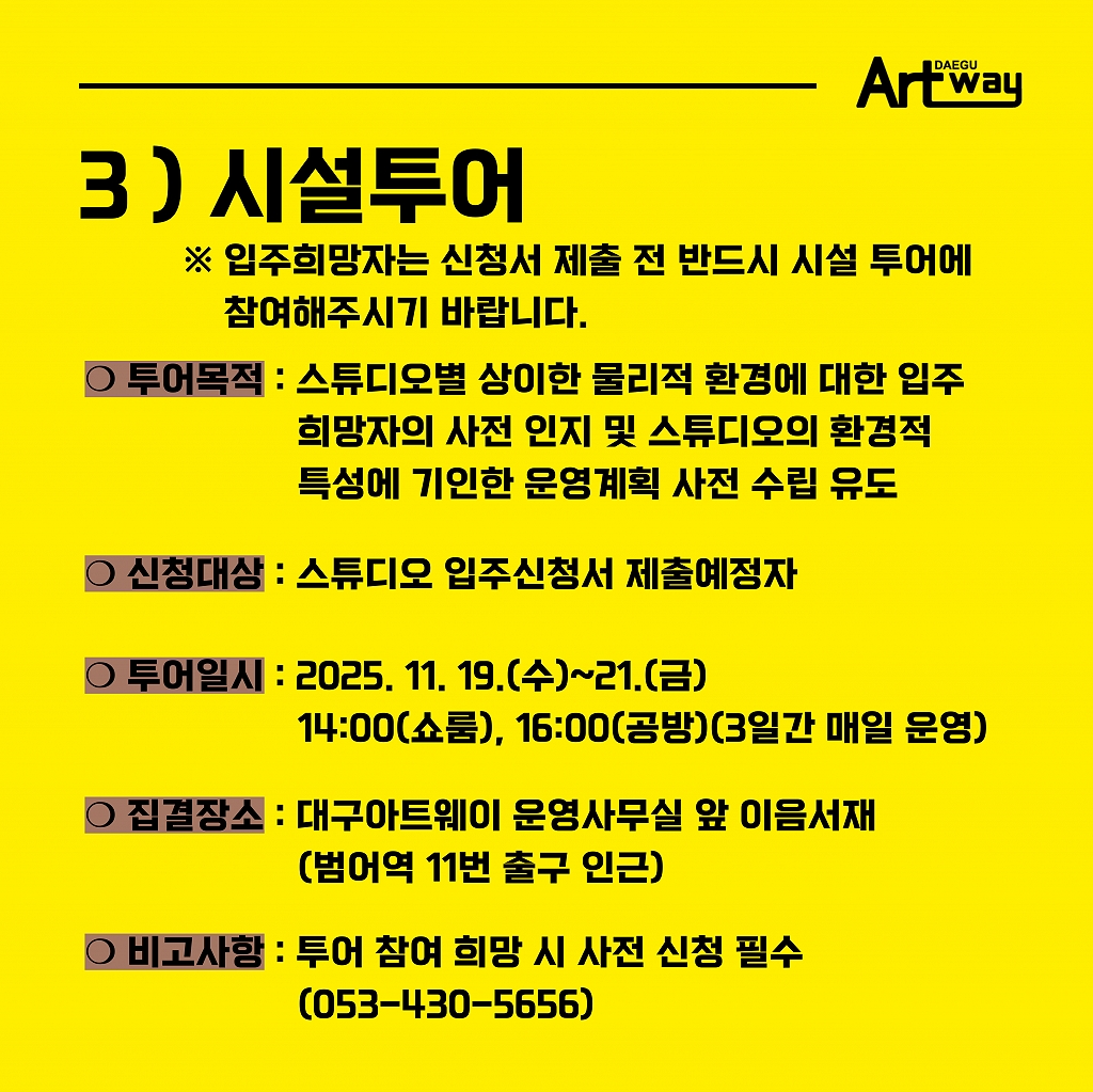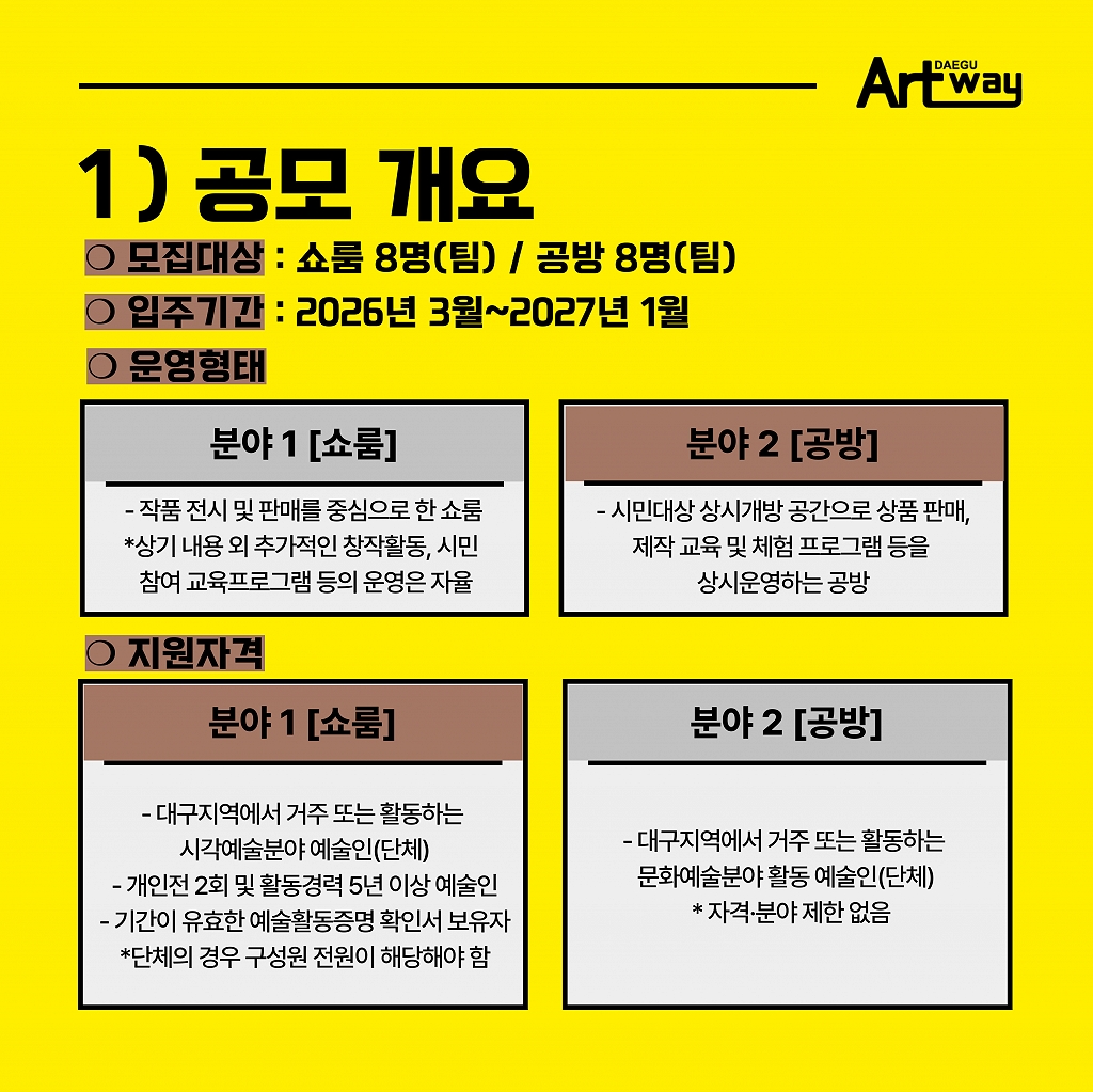 ❍ 공 고 명 : 2026년 대구아트웨이 스튜디오 입주예술인(단체) 공모